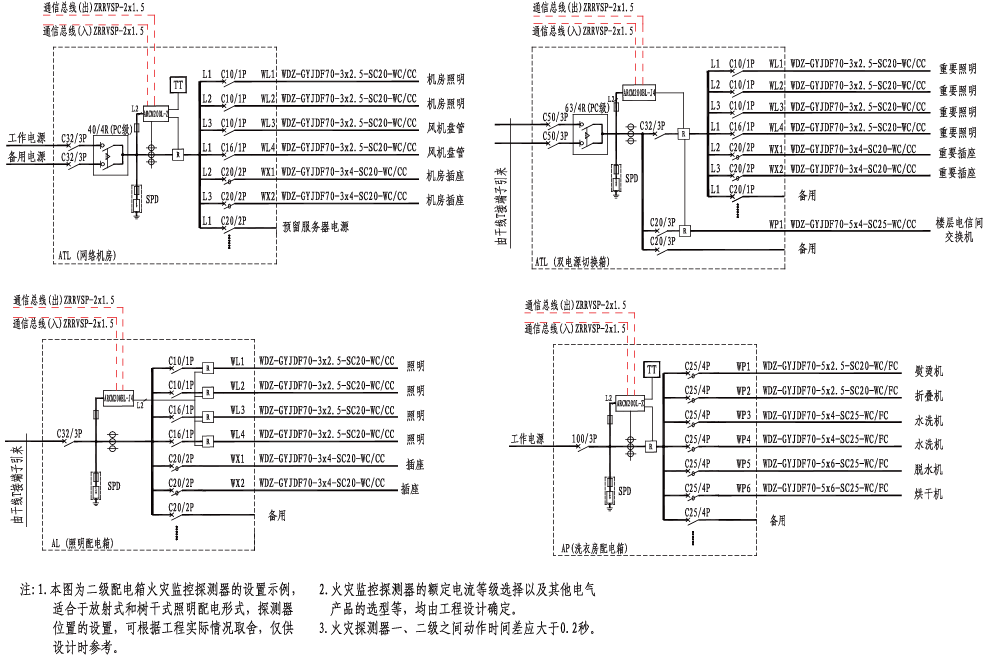二級配電箱電氣火災(zāi)監(jiān)控探測器設(shè)置示例
