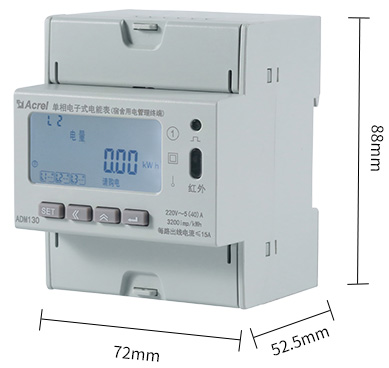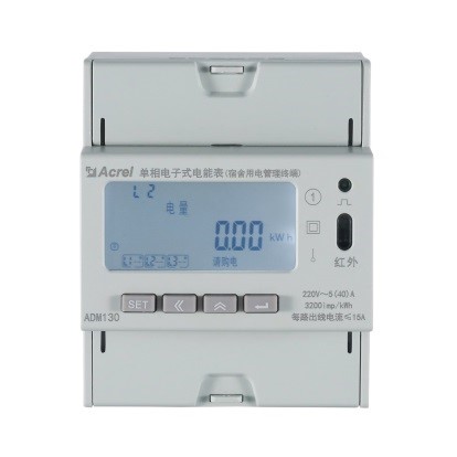 產(chǎn)品簡介:ADM130 單相電子式電能表(宿舍用電管理終端)主要用于計量單相交流用電,終端可以一路火線進線,三路火線并聯(lián)輸出分別計量照明、插座、空調(diào)回路,可進行預付費控制,并可對三路出線分別進行負載控制和時間控制并支持近30條跳閘事件記錄存儲功能,管理終端支持485和紅外通訊,可方便地實現(xiàn)遠程抄表、遠程充值、遠程控制等功能。