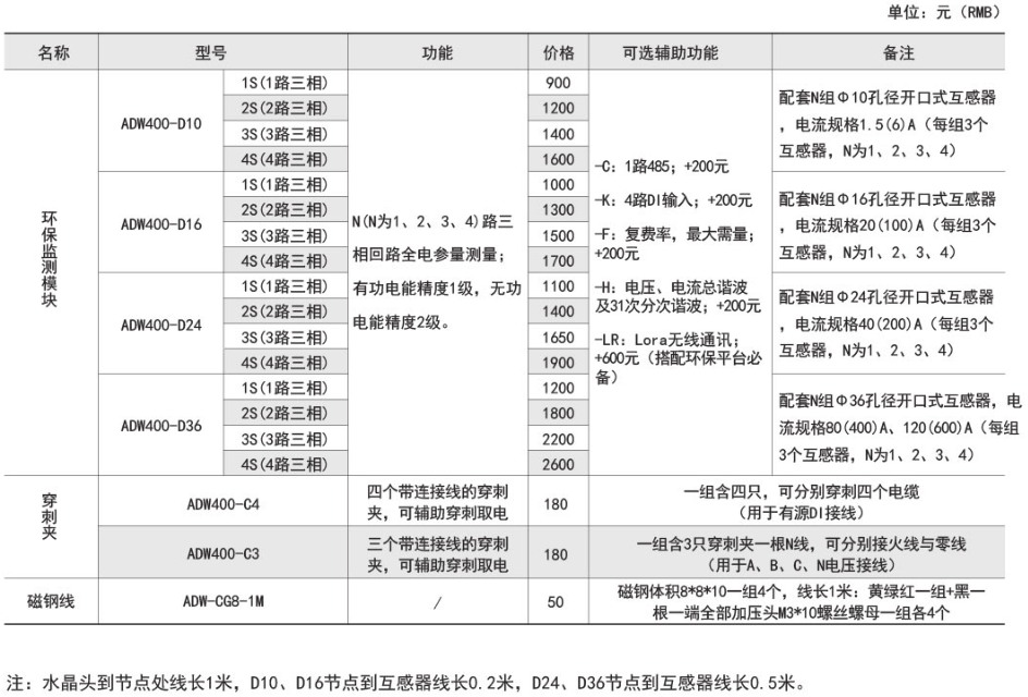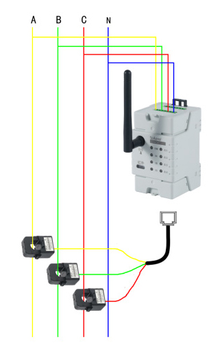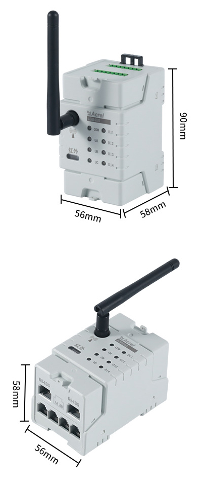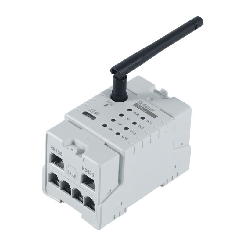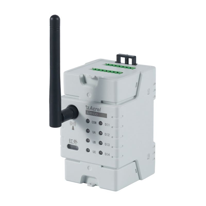 ADW400環保監測模塊主要用于計量低壓網絡的三相有功電能,同時可選擇四個回路的電流輸入,具有RS485通訊和470MHz無線通訊功能,方便用戶進行用電監測、集抄和管理??伸`活安裝于配電箱內,實現對不同區域和不同負荷的分項電能計量,統計和分析。