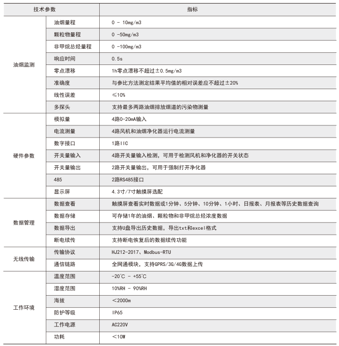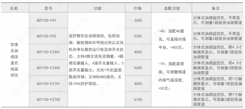 產品簡介:ACY100型飲食業油煙濃度在線監控儀是針對飲食業廚房油煙排放場合而設計的,由油煙探頭、傳感器、控制板和顯示屏等部分組成,用于監控油煙、顆粒物和非甲烷總烴等污染物的排放狀況和過程參數,以及風機和凈化器的電流和開關狀態等,并可通 過RS232/485或4G等方式進行數據傳輸的設備。監控儀支持最多兩路油煙排放煙道的污染物測量。