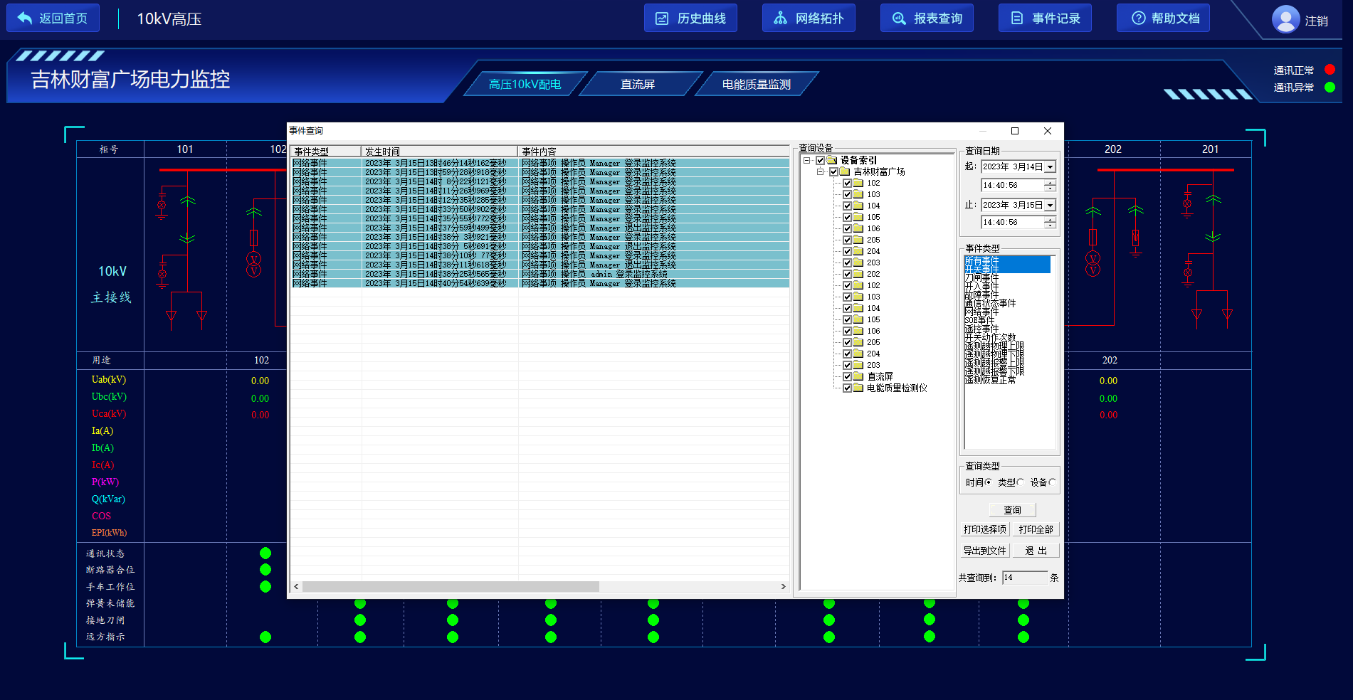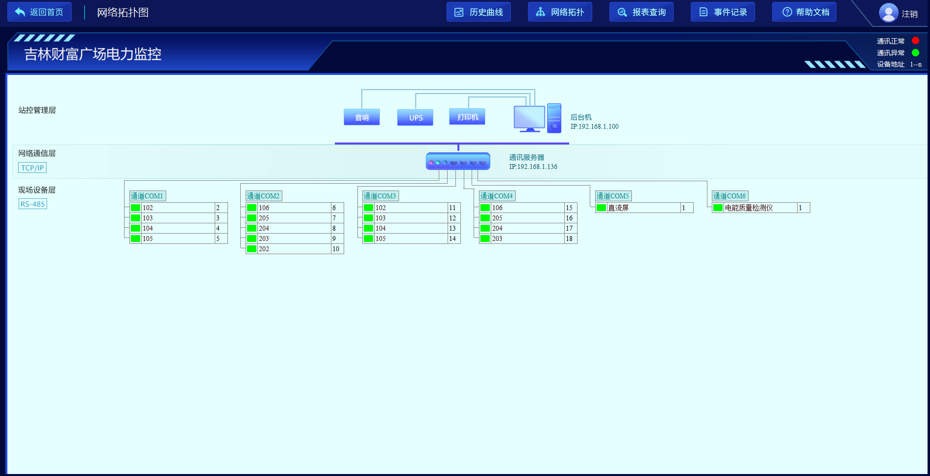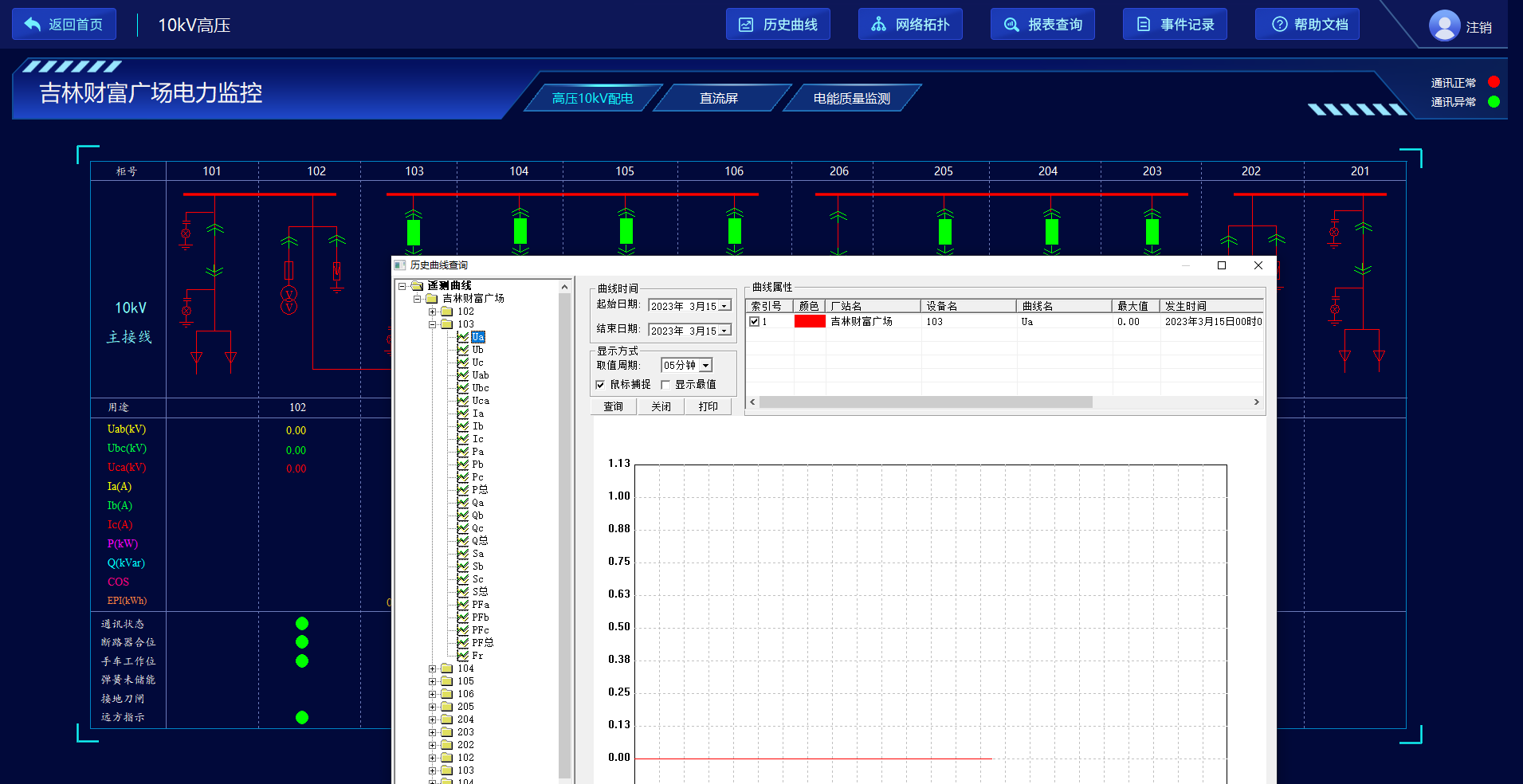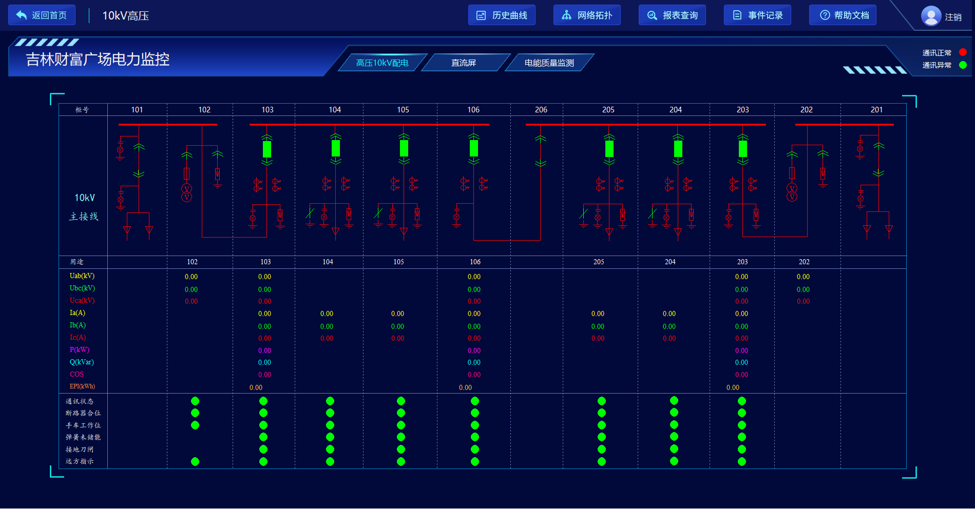 吉林財富購物廣場1個高壓配電室采集8臺安科瑞AM5微機保護;7臺安科瑞AMC96-E4微機保護。