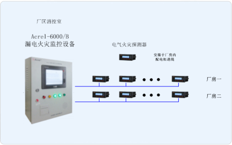 本項(xiàng)目針對(duì)其6萬噸年MTBE裝置原料預(yù)處理裝置所在廠房的配電系統(tǒng)設(shè)計(jì)一套電氣火災(zāi)監(jiān)控系統(tǒng)。通過實(shí)時(shí)監(jiān)測(cè)廠房?jī)?nèi)的重要配電箱的進(jìn)線回路,實(shí)時(shí)監(jiān)測(cè)其漏電流的大小以及溫度等參量,通過限制預(yù)警,增強(qiáng)管理人員的電氣火災(zāi)隱患防范意識(shí),提高電氣火災(zāi)隱患的排查效率,確保廠房?jī)?nèi)的生產(chǎn)安全。