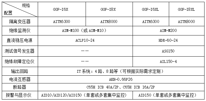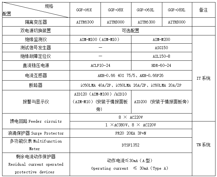 注:1.GGF-IXF和GGF-OXF型為分體式安裝的配電柜,其隔離變壓器外置。