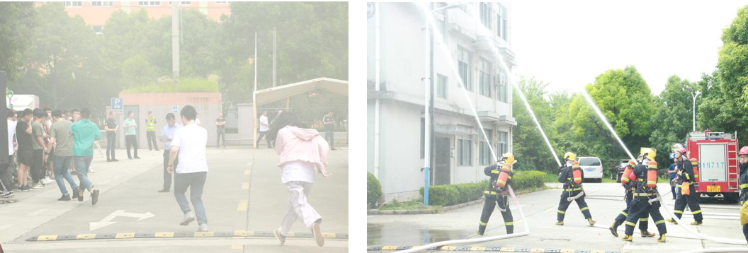 第一項火災疏散演練,模擬公司食堂內燃氣泄漏引發火災,公司應急救援人員按照應急程序,隨即展開人員的救援、撥打“119”以及有序疏散等活動。