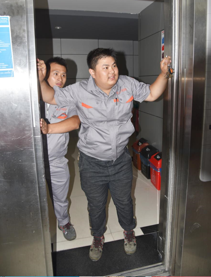 第二項特種設備事故應急演練,模擬公司一電梯發生困人事故,電梯維保員接到電話后,快速到達事故現場,協同應急救援小組實施解救被困人員。