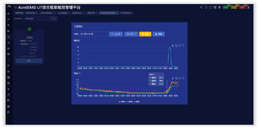 電氣火災監控系統作為火災自動報警系統的預警子系統,由電氣火災監控主機、電氣火災監控單元、剩余電流式電氣火災探測器以及測溫式電氣火災探測器組成,通過現場消防環網和消防總線構成一套完整的預防電氣火災的監控系統,數據可集成至管廊的AcrelEMS-UT能效管理系統并提供預警信號。