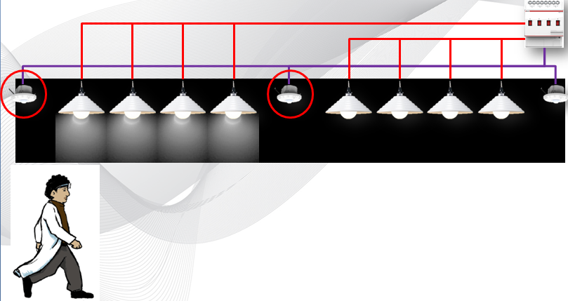 在通道、走廊、公共區(qū)域、樓梯間、會(huì)議室等場(chǎng)所布置人體感應(yīng)傳感器,當(dāng)人員進(jìn)入?yún)^(qū)域時(shí),自動(dòng)打開照明;當(dāng)人員離開后,延遲一段時(shí)間再關(guān)閉,根據(jù)需求設(shè)定。